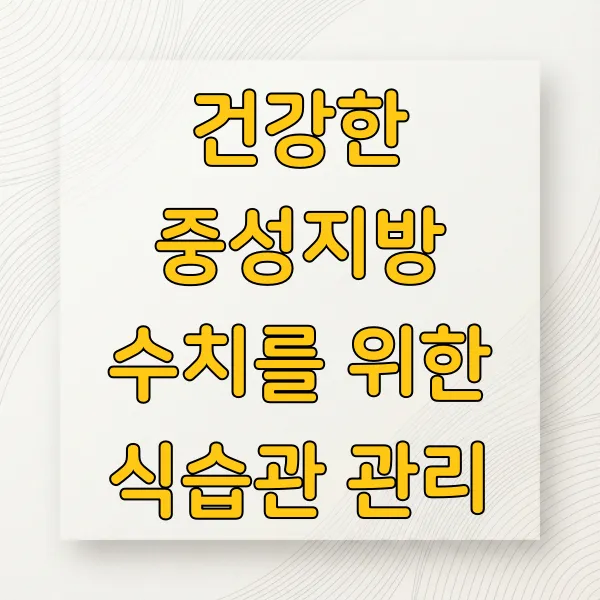 무엇보다 중요한 것은 정기적인 건강 검진 입니다. 혈액 검사를 통해 중성지방 수치를 포함한 전반적인 건강 상태를 주기적으로 확인하는 것이 좋습니다. 검진 결과 이상 소견이 있다면 즉시 의료 전문가와 상담하여 정확한 진단과 맞춤형 관리 계획을 세우는 것이 현명합니다.